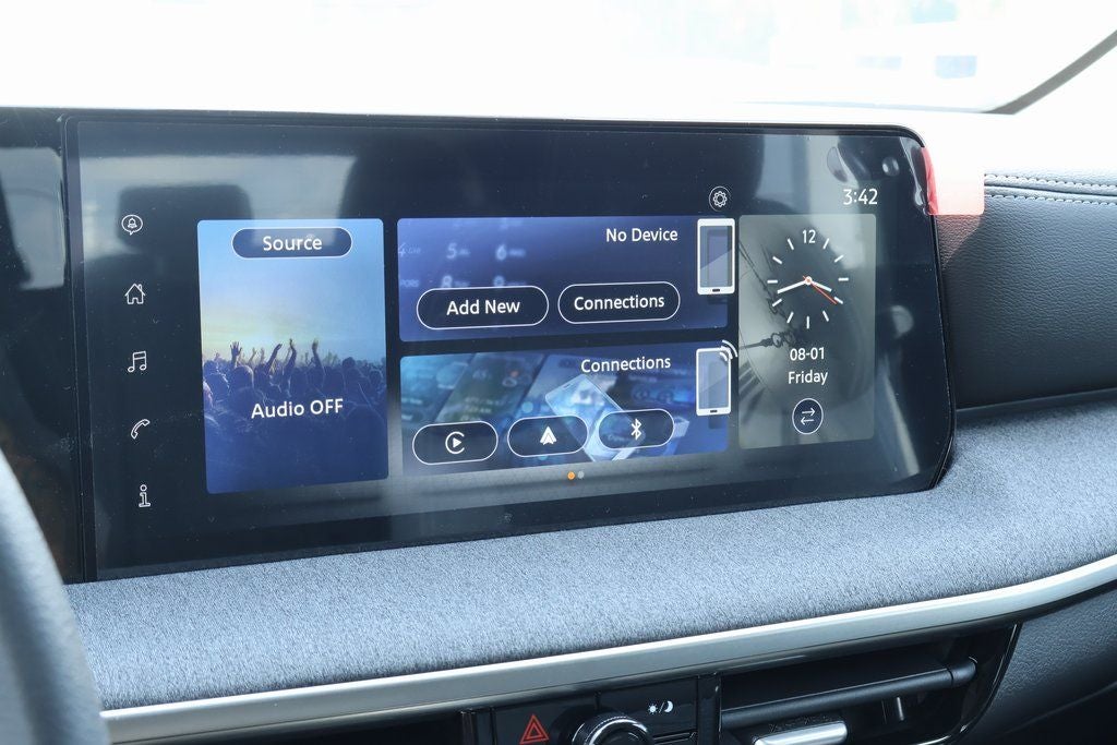 - Radio: NissanConnect w/Hybrid Radio -inc: Bose premium series audio system w/10 speakers (2 instrument panel corners, 2 A-pillar, 2 front door, 2 rear door), Richbass subwoofer, 12.3" color touch-screen display, wireless Apple CarPlay, wireless Android Auto, 2 front and 2 rear USB type-C charge and data, Google built-in w/Google Assistant, Google Maps and Google Play, NissanConnect services powered by SiriusXM, SiriusXM w/360L, in-vehicle data, Wi-Fi hotspot, Alexa built-in and basic voice control