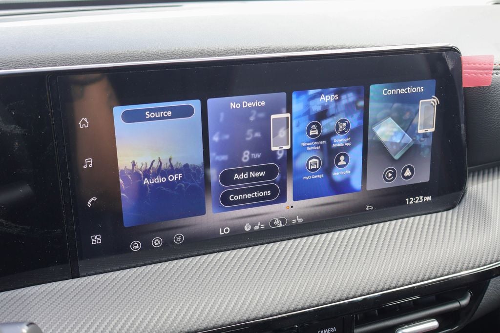 - Radio: AM/FM/SiriusXM Audio System -inc: 12.3" color touchscreen display w/6 speakers, Bluetooth® hands-free phone system, streaming audio via Bluetooth®, NissanConnect Services powered by SiriusXM featuring wireless Apple CarPlay, wireless Android Auto, Siri eyes free and hands-free text messaging assistant, audio and Bluetooth® steering wheel switches and Wi-Fi hotspot