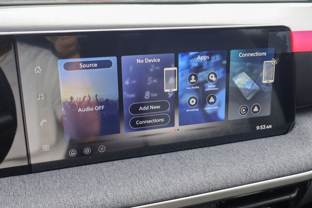 - Radio: AM/FM/SiriusXM Audio System -inc: 12.3" color touchscreen display w/4 speakers, Bluetooth® hands-free phone system, streaming audio via Bluetooth®, NissanConnect featuring wireless Apple CarPlay, wireless Android Auto, Siri eyes free and hands-free text messaging assistant, audio and Bluetooth® steering wheel switches