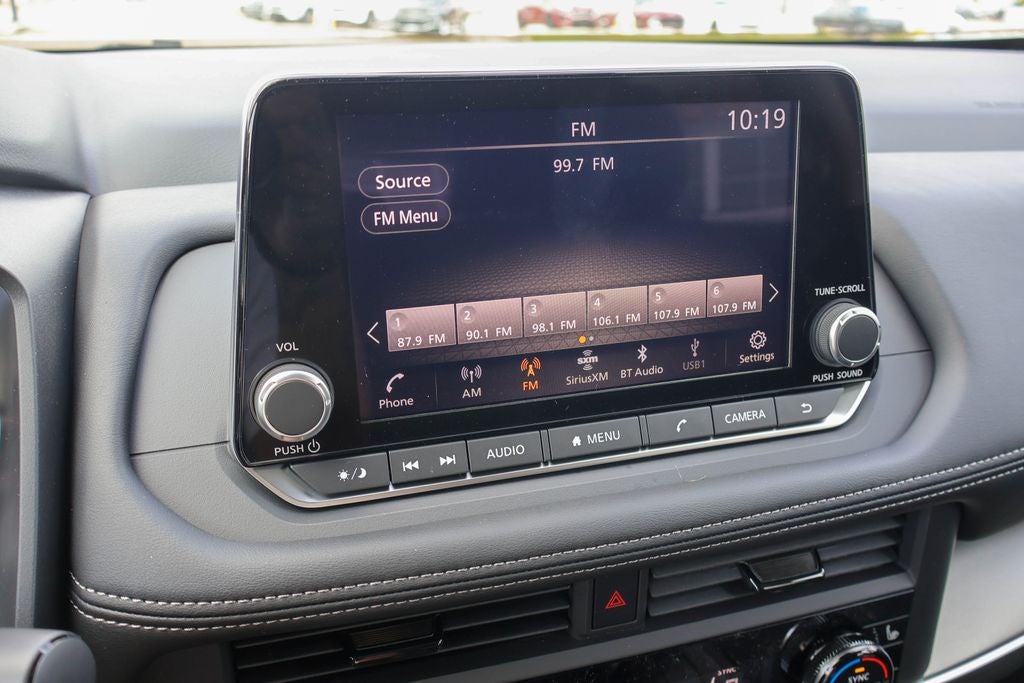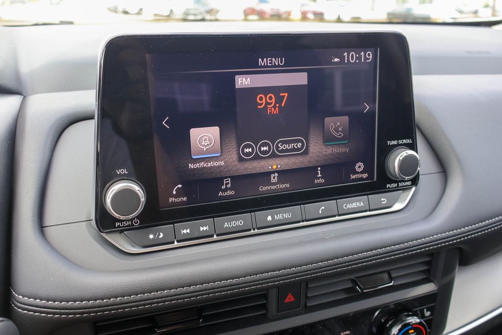 - Radio: AM/FM NissanConnect -inc: 6 speakers plus 2 tweeters, Apple CarPlay, Android Auto, 8" color touch screen display, Bluetooth®, 2 front USB type-C, Wi-Fi hotspot and NissanConnect Services powered by SiriusXM