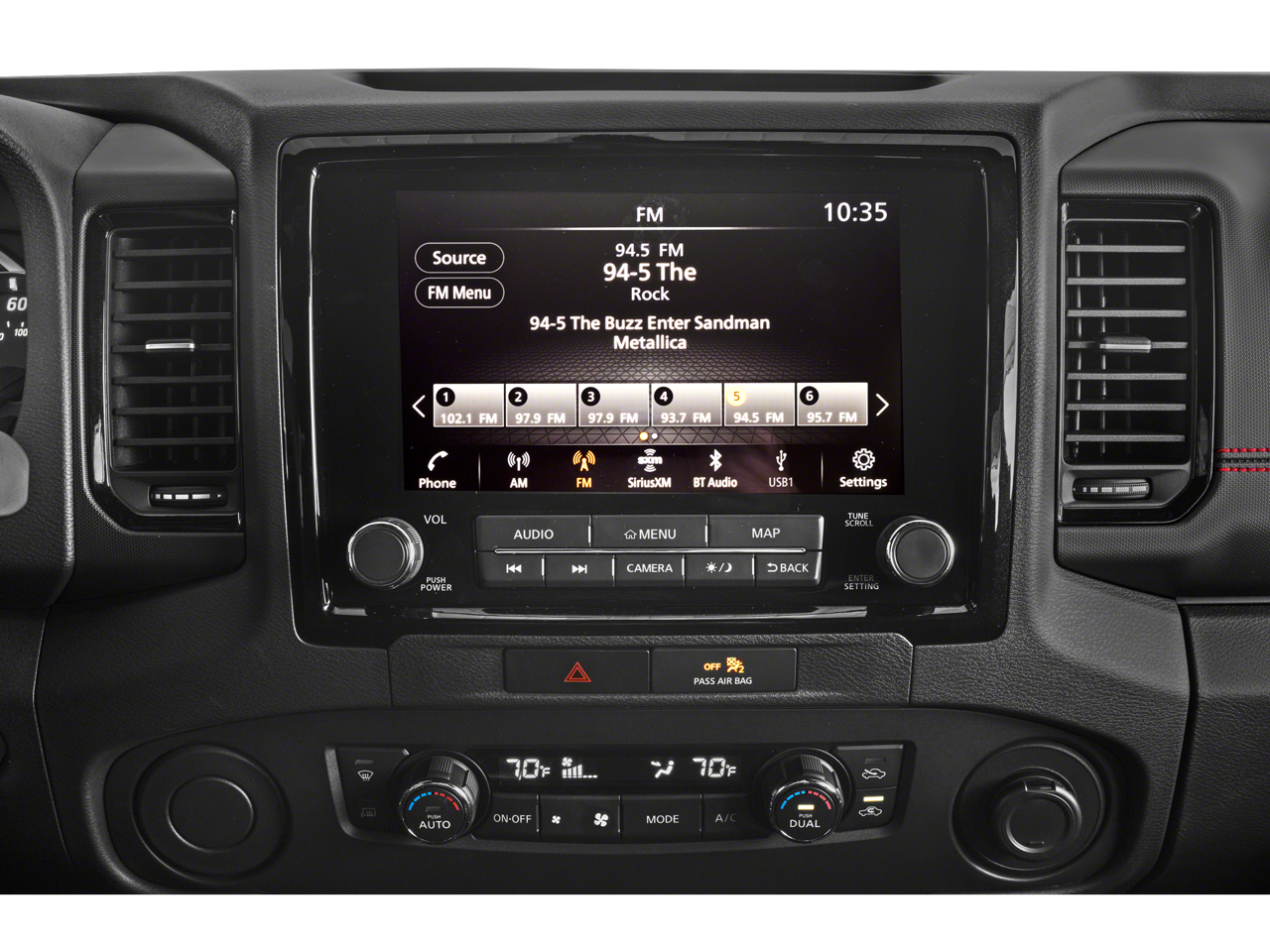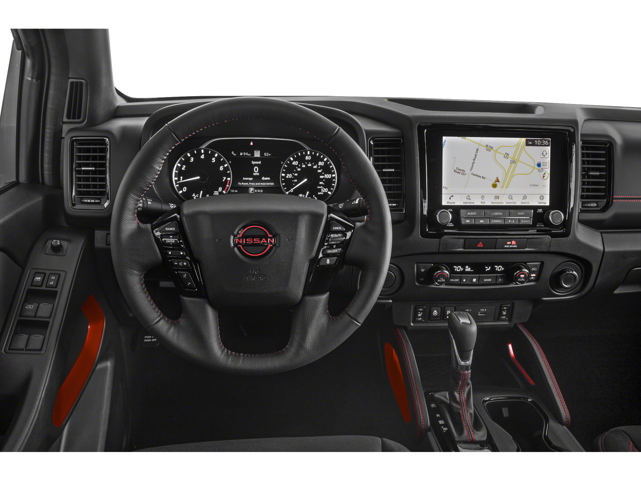Elevate your driving experience with the Frontier PRO-X's exceptional technology and convenience features. Enjoy the convenience of the Nissan Navigation system with voice recognition, the premium Fender audio system with 10 speakers, and the 120V power outlet in the bed for all your on-the-go needs. The remote engine starter and heated steering wheel ensure you're always comfortable, while the Intelligent Around View Monitor and Blind Spot Warning keep you aware of your surroundings.
