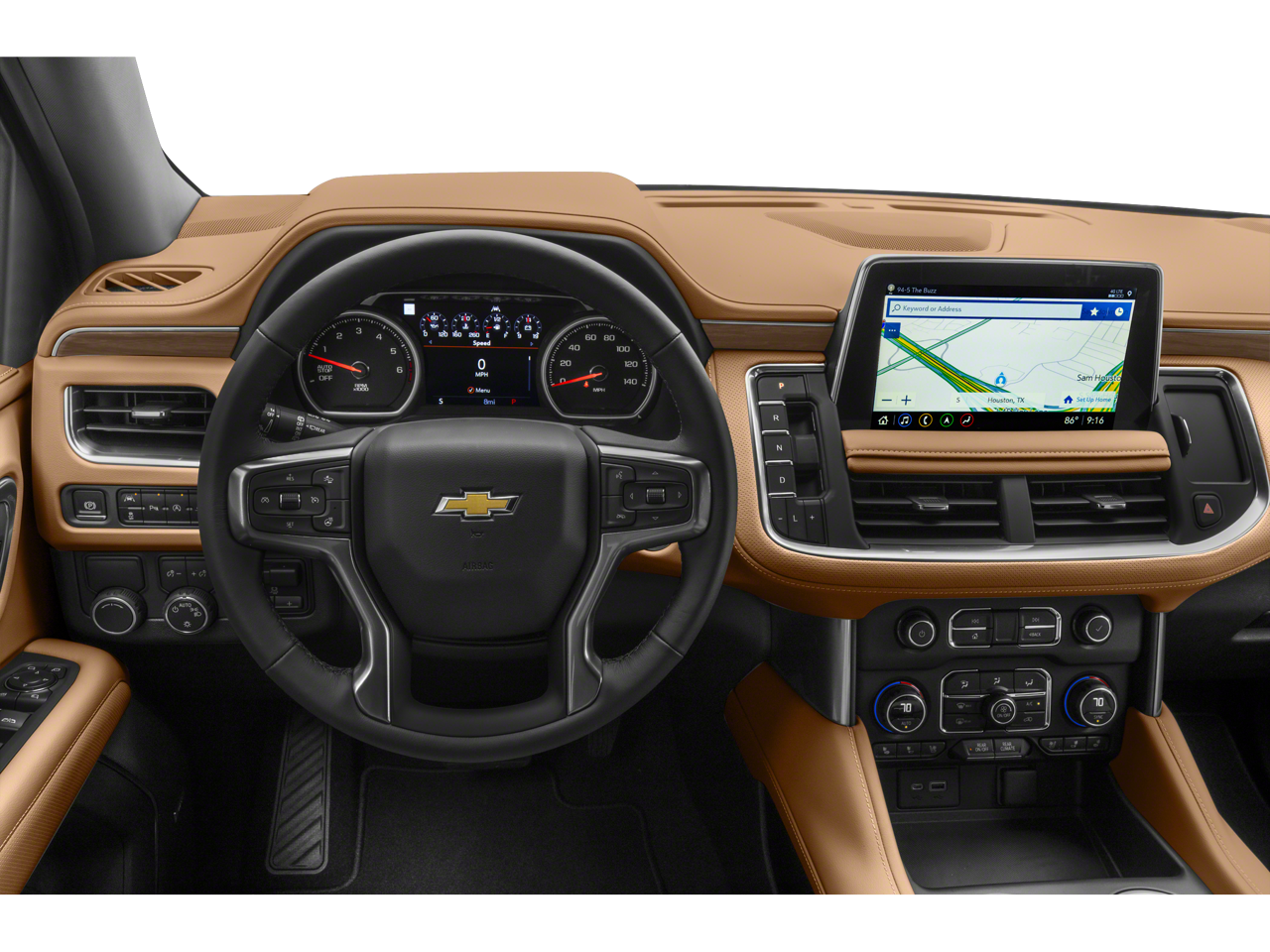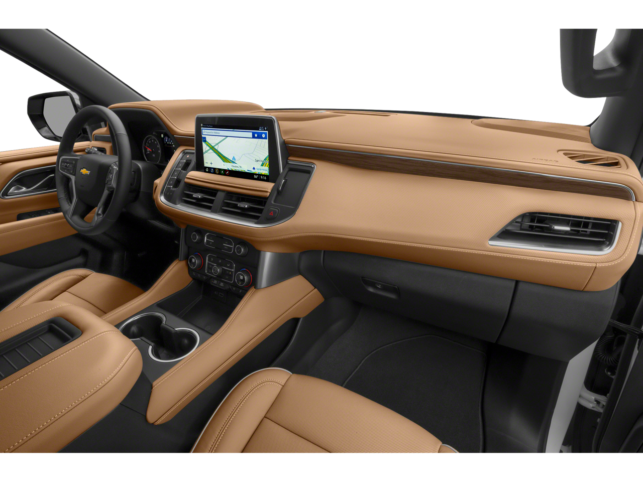 The Tahoe's spacious interior offers seating for up to eight passengers, with ample room for cargo and the convenience of a power-folding third-row seat. The Bose 10-speaker audio system and Chevrolet Infotainment 3 Premium system with navigation provide an exceptional multimedia experience, while the heated and ventilated front seats and heated second-row outboard seats ensure maximum comfort.