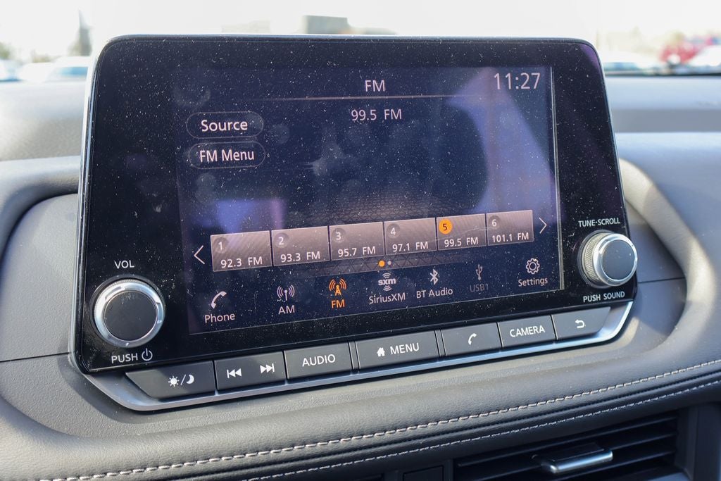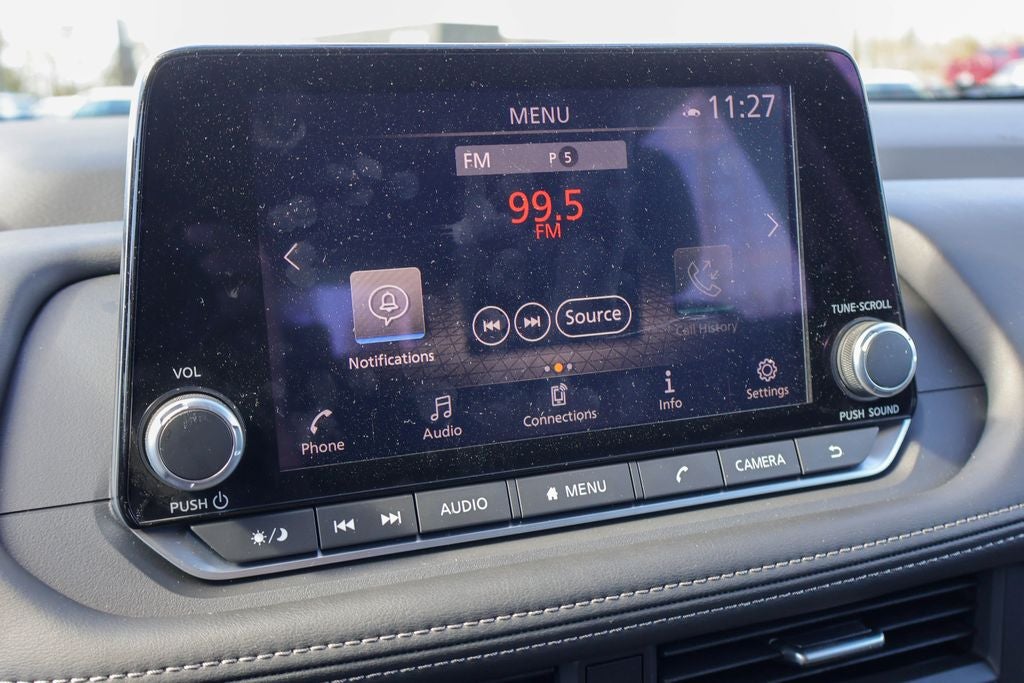 - Radio: AM/FM NissanConnect -inc: 6 speakers plus 2 tweeters, Apple CarPlay, Android Auto, 8" color touch screen display, Bluetooth®, 2 front USB type-C, Wi-Fi hotspot and NissanConnect Services powered by SiriusXM